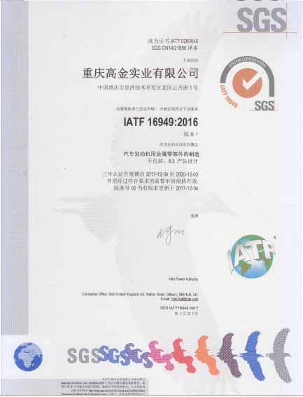 2016年12月開始策劃ISO9001:2015、IATF16949:2016新版認證、轉證認證工作,2017年4月邀請BSI(英標認證技術培訓公司)到我司對ISO9001:2015、IATF16949:2016標準進行培訓,同時進行了內審員培訓,公司領導高度重視,全公司各副總、部長、經理、主管、班組長、質量和技術工程師參加了培訓,有35人獲得內審員資格證;培訓后由各部門負責人新自修訂及新增體系文件,建立了一套符合國際質量標準和汽車質量管理體系,通過對全員的宣傳、培訓,于2017年6月正式運行新版體系,2017年9月SGS認證公司審核專員蒞臨我司,在公司體系專員的陪同下、各部門負責人、全體員工的積極配合下,外審專員對我司質量管理體系進行了細致嚴謹的審核,ISO9001:2015、IATF16949:2016新版和轉證的認證順利通過,同時也是對我司質量管理工作的一種肯定,進一步證明了我公司產品的高質量水平。